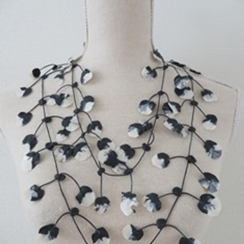 Eerst bekijk je welk ontwerp je graag zou willen, dan maak je een keuze uit verschillende kleuren. Je kunt aan de hand van voorbeelden kijk wat het beste bij je past. Als je weet wat je wilt gaan we aan de slag. Tussendoor even pauze voor koffie of thee met wat lekkers. Daarna weer verder met je ketting, als hij helemaal af is laten we hem drogen. Thuis gekomen zal je zien dat de ketting schitterend staat op verschillende kleding stukken, je zult hem met plezier dragen!