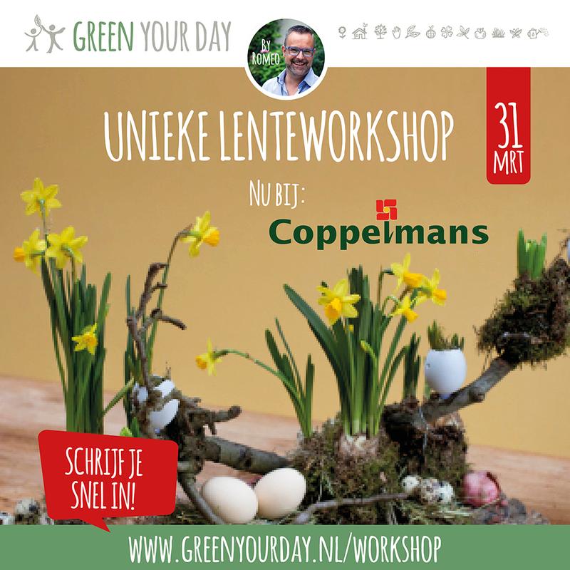 Daarom organiseren Green Your Day en het tijdschrift Margriet voor de 2e keer een landelijke workshopdag. Dit doen we in samenwerking met tuincentra Coppelmans, De Bosrand en Tuinwereld, zodat er altijd een workshopplek bij jou in de buurt is. Op 31 maart a.s. maken we samen de lentecreatie, bedacht door Romeo Sommers. Voor € 19,95 ontvangen de tuincentra je in een gezellige sfeer, leer je te werken met groen en decoratie en aan het eind van de workshop neem je natuurlijk de creatie mee naar huis.