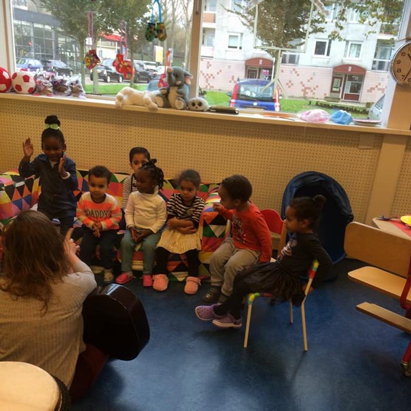 Door middel van verhaaltjes leren kinderen over ritmes die ze kunnen horen in de natuur. We maken dansjes met songteksten en ritmes waardoor ze muziek kunnen ervaren en voelen. Daarnaast kunnen de kinderen luisteren naar instrumenten zoals; Saxofoon, Dwarsfluit en Gitaar.
