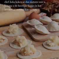 In onze workshop kunt u zelf de heerlijke deeghapjes bereiden en leert wat er zo bijzonder is aan Oekraïense varenyky. Onze chef-koks koken ze dan meteen voor u, waarna u de heerlijke hapjes in het restaurant meteen kan opeten.