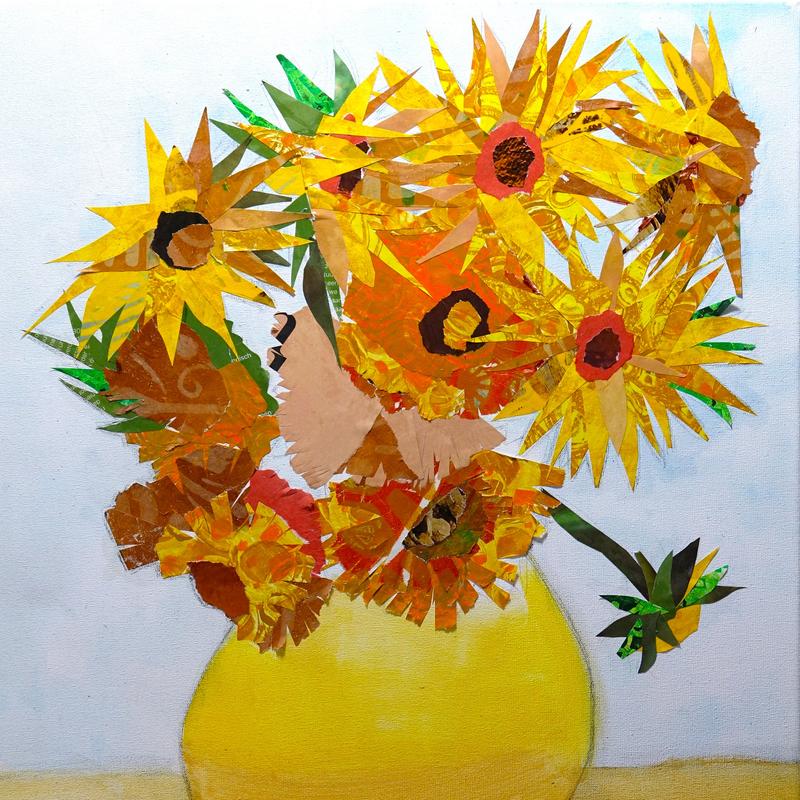 Ontdek de creatieve workshop "Zonnebloemen van Van Gogh"! Maak je eigen collage schilderij en laat je inspireren. Bezoek onze website voor meer informatie.