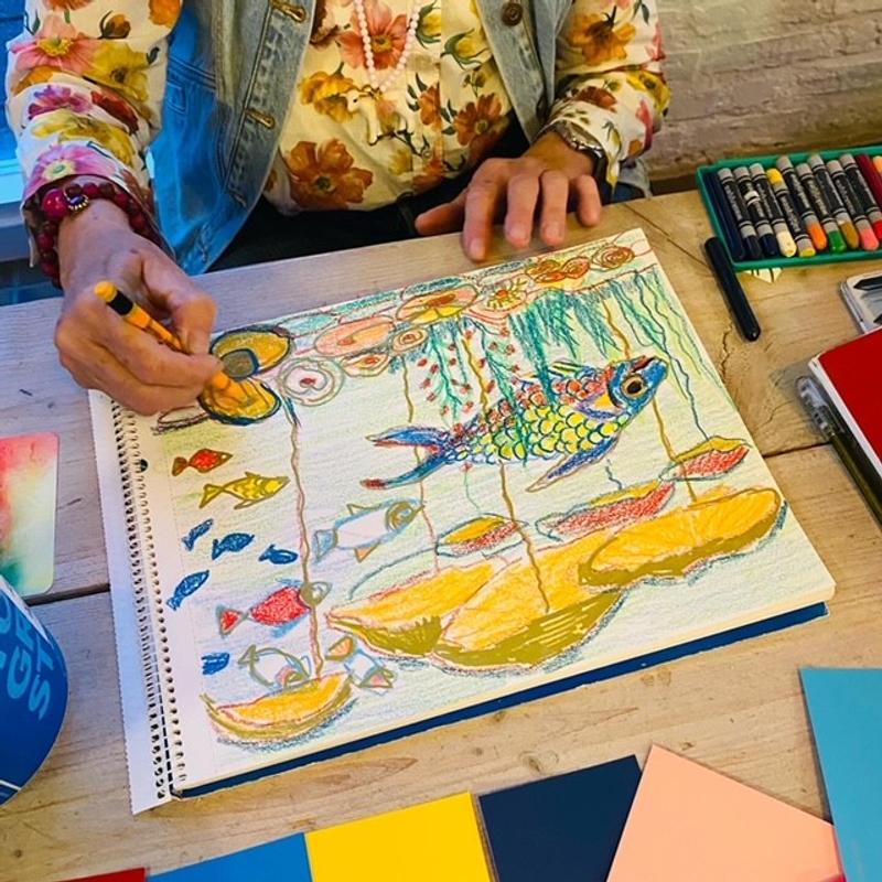 Intuïtief tekenen en schilderen is voor iedereen die fan is van kleur en graag zijn of haar creatieve proces stimuleert. Tijdens de lessen leer je jouw unieke expressie met kleur, vorm en compositie uit te beelden. Tijdens het tekenen ervaar je rust en ontspanning en mag je loskomen van je denken. Je laat je leiden door je intuïtie en wat jouw creativiteit je ingeeft.