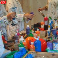 Action Painting, dat wat thuis niet mag. Bij een workshop action painting, waarbij niet zozeer het resultaat maar het proces als doel wordt gekozen is de techniek de uitdagende factor. Kun je het gebruik van de kwast loslaten en al je energie in de verf stoppen zonder dat het alleen gooien en smijten wordt. Wat gebeurt er als we ons even helemaal los maken en alle drukte en frustratie van de afgelopen tijd in dynamiek omzetten. Na een paar minuten afstand nemen en besluiten hoe en of we verder gaan. Wat gebeurt er met mij en mijn mede cursist als we de remmen even losgooien. Het resultaat is steeds verrassend en uitdagend. Gehuld in beschermende kleding die door BoMiArt ter beschikking wordt gesteld gaan we in kleine groepjes aan de slag op een door het groepje gekozen formaat: bescheiden, groot of enorm! Later kan, als men daar behoefte aan heeft, het resultaat worden ingelijst en als blijvende herinnering worden meegenomen, al hoeft dat natuurlijk niet!