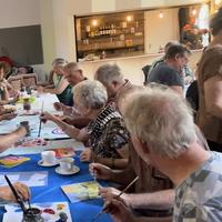 Unieke teambuilding in het atelier in Amersfoort. Maak met elkaar een gezamenlijk schilderij op houten tegels. Deze tegels kunnen voor jullie team ingelijst worden en op jullie locatie wordt het schilderij bezorgd. Kies vooraf een schilderij van een beroemd schilder of vraag Meesterwerken op Maat om voor jullie iets te ontwerpen. Dat kan ook in combinatie zijn met jullie logo. Het ontwerp wordt vooraf voor jullie voorbereid. Tijdens de workshop gaat elke deelnemer aan het werk met een onderdeel van het schilderij (op de houten tegel). Er kan afgestemd worden op de tegels die aansluiten op de eigen tegel, of wordt er misschien juist bewust een eigen kleurencombinatie gehanteerd? De manier waarop jullie dit aanpakken is voor elk team anders. Leer elkaar en een manier van samenwerken nog beter kennen bij de Teamworkshop Gezamenlijk Schilderij.