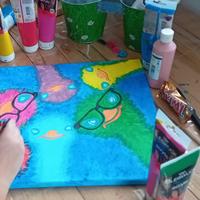 Tijdens deze leuke workshop schilder jij een paneel van 50x40 vol met grappige struisvogels. Dit kan in gezellige bonte kleuren, maar natuurlijk ook heel neutraal, met bijvoorbeeld bruin/wit/zwart tinten.