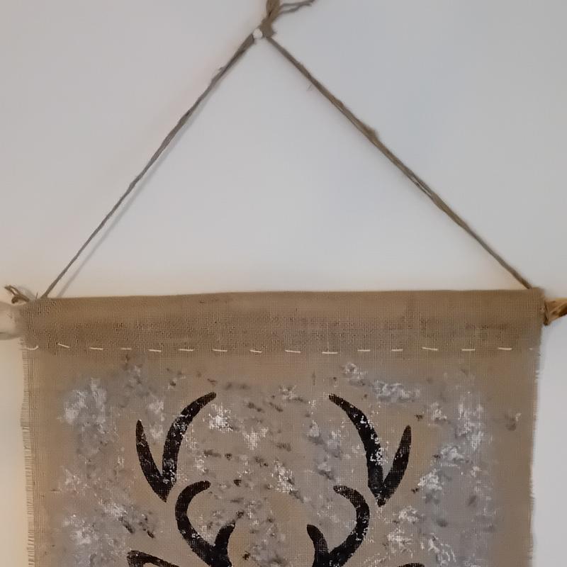 Tijdens deze workshop werk je met verf en sjablonen op een jute doek van ong 60x80 cm. Met een sjabloon schilder je een mooie print op je doek. Er zijn leuke teksten en afbeeldingen mogelijk. Je kunt je doek sober houden met 1 afbeelding of je bewerkt hem met wat kleur of meerdere prints. Het is jouw unieke jute schilderij!